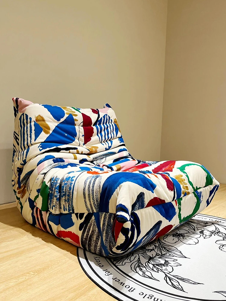 Designer Limited Edition Plush Caterpillar Sofa - Trendy Lazy Chair with Graffiti Design for Bedroom, Single Tatami Style Seating, Perfect for Cozy Relaxation
