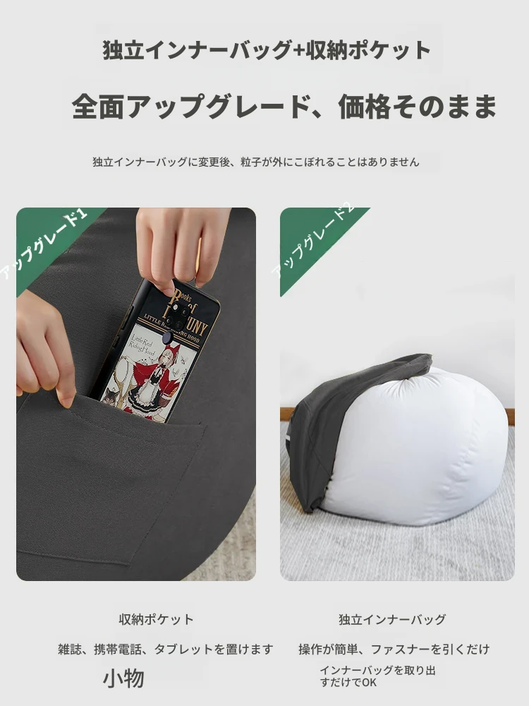 リラックスできる豆袋ソファ|寝室やタタミ、バルコニーに最適|子供用ソファとしても使えるコンパクトデザイン|寝転びやすく、座り心地抜群なマルチユースクッション!