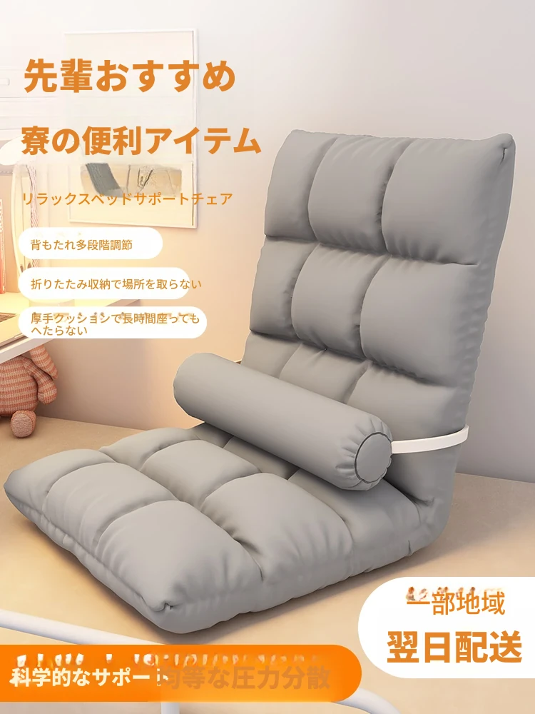 寛ぎの宿舎用背もたれ椅子!腰を支えるクッション付き、楽々リラックスできるサイドソファ。床にぴったりフィットし、タタミスタイルにも最適!寝室やリビングで心地よいひとときをお楽しみください。