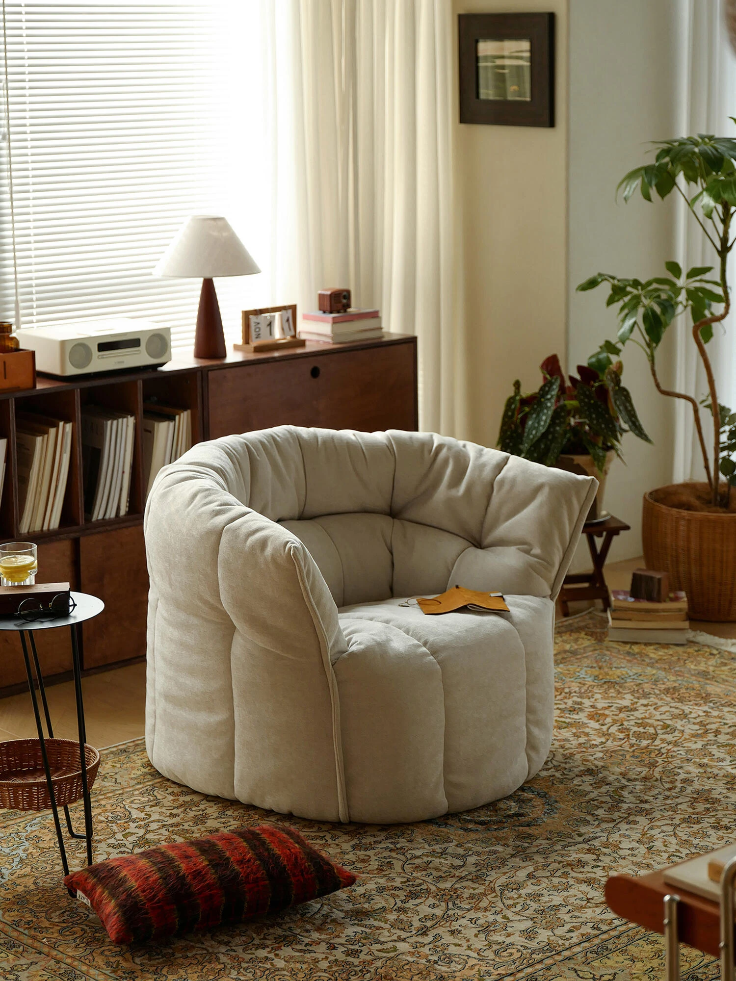 リラックスできる中華風の巨大毛虫ソファチェア、バルコニーや寝室にぴったりの一人掛けソファ、畳にも最適!快適さとデザインを兼ね備えたあなたの癒しの空間を作ります。