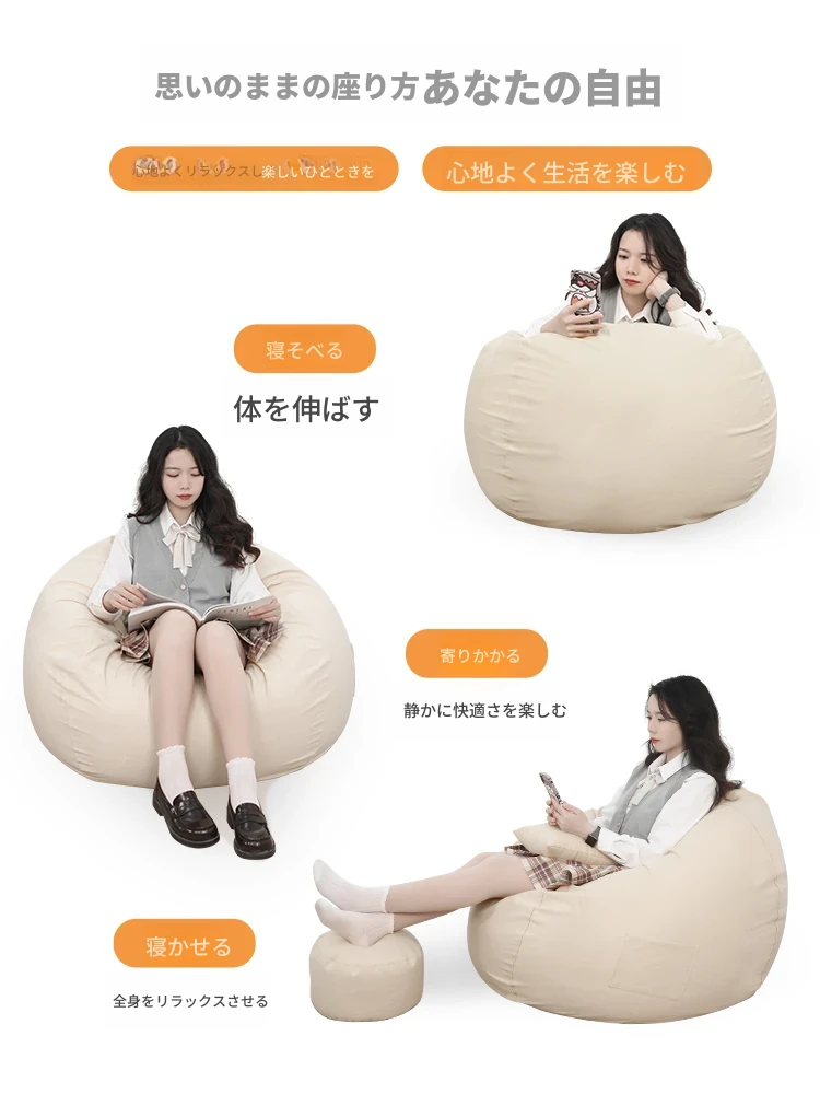 リラックス豆袋ソファー|タタミスタイルで寝るも座るも自由自在!小スペースに最適な一人用リクライニングチェア|寝室やバルコニーでくつろぎのひとときを。
