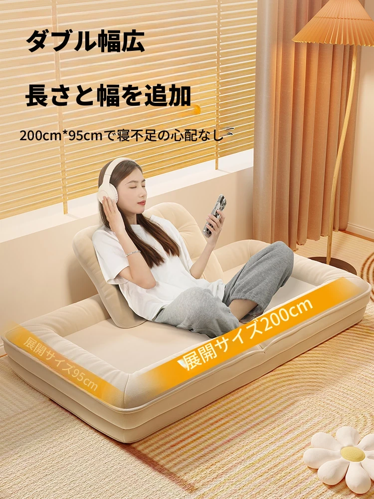 リラックスソファ|寝転びOK!畳スタイルのベッドサイドダブルチェア|リビングにもぴったりの一人用折りたたみソファ|窓辺で心地よいひとときをお楽しみください。