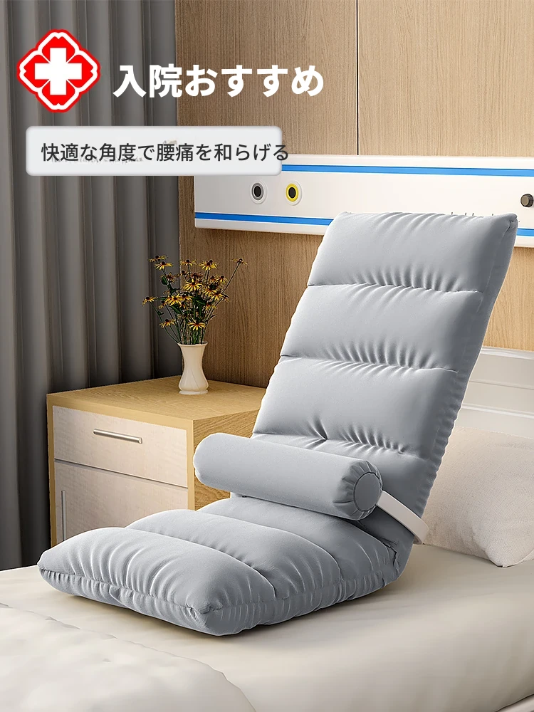 折りたたみ式リクライニングチェア - 寝室や学生寮に最適!ベッドの上でくつろげる快適な背もたれ付き。勉強やリラックスにもぴったりのラウンジチェア。おしゃれな畳スタイルでお部屋を彩ります!