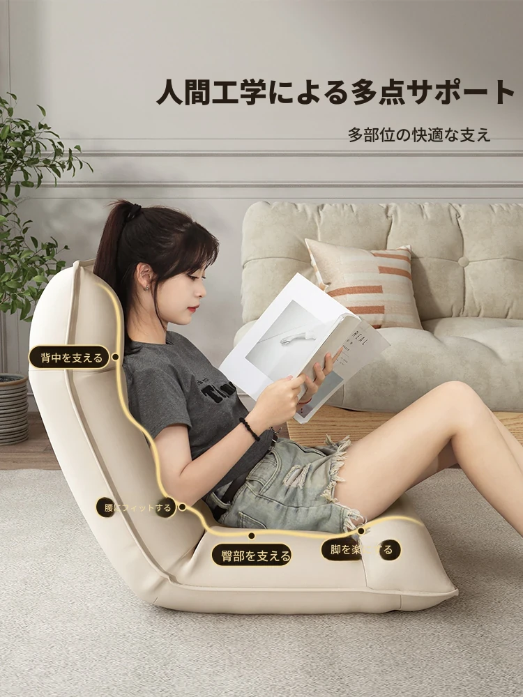 リラックスソファー・タタミ座椅子|おしゃれな寝室や窓辺にぴったり!床に座れるシングルソファー|家庭用・ベッドサイドの背もたれとしても大活躍!快適さとデザインを兼ね備えた一品です。